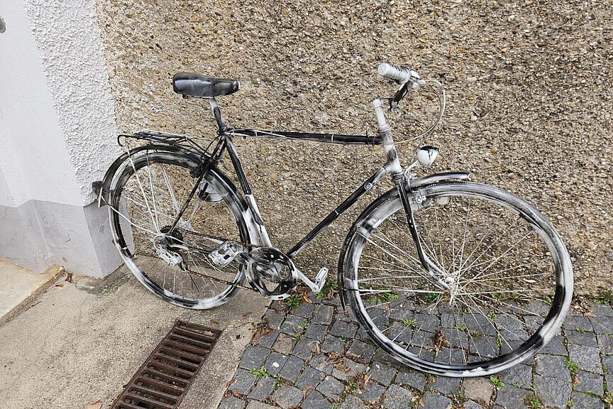 Das komplett weiß lackierte Fahrrad, das in Erinnerung an einen im Oktober 2023 tödlich verunglückten Fahrradfahrer aufgestellt wurde, diente nicht nur als Denkmal, sondern vor allem als Mahnung an alle Verkehrsteilnehmenden zu mehr Rücksicht und Vorsicht im Straßenverkehr. Es wurde in einem Akt der Respektlosigkeit und Verachtung mit schwarzer Farbe übersprüht.