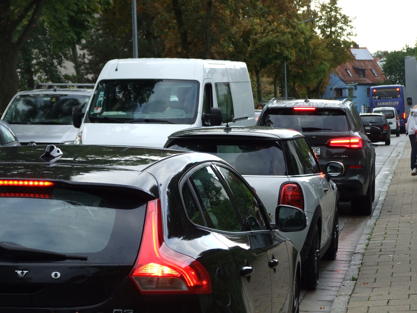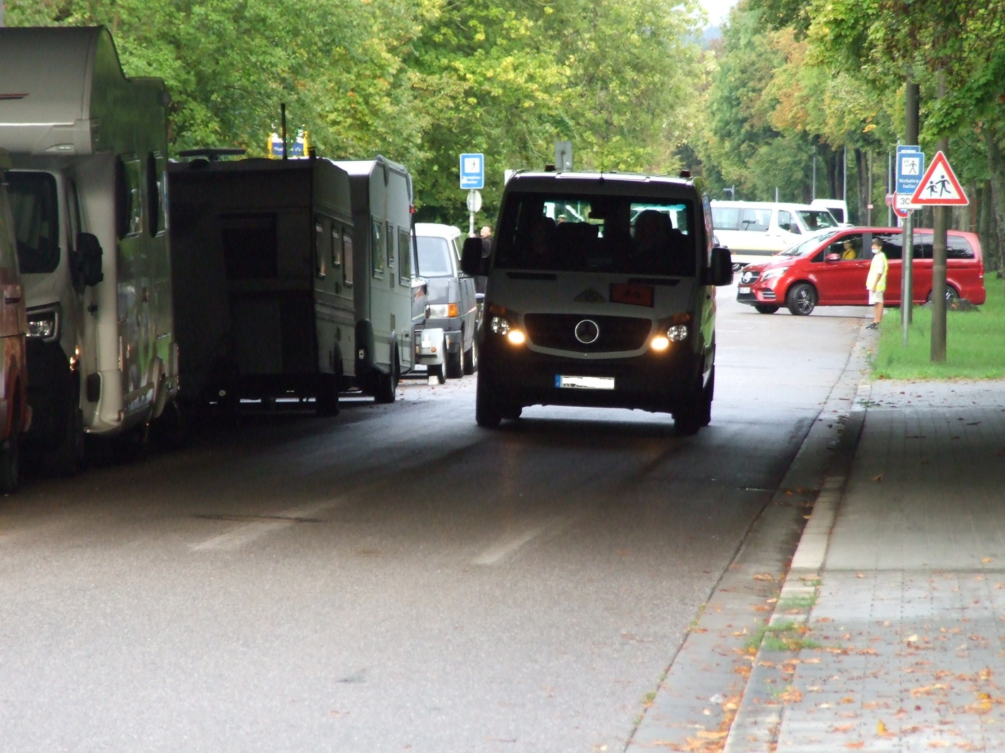 Die geparkten Autos, Wohnmobile und Wohnwägen verengen die Straße so, dass ein reibungsloser Verkehr der Schulbusse nicht möglich ist. Es kommt zu Staus und chaotischen Zuständen, so dass sich radfahrende Schüler und Schülerinnen genötigt sehen, auf den Fußweg auszuweichen. Es kann nach Ansicht des ADFC nicht sein, dass das Interesse Einzelner, die ihre Fahrzeuge dort parken, das sichere und reibungslose Fortkommen vieler Kinder beeinträchtigen darf. Der ADFC hat angeregt, die Parkplätze vom Weinweg im Bereich Bischof-Manfred-Müller-Schule bis zur Kreuzung Clermont-Ferrand-Straße auf die Clermont-Ferrand-Straße zu verlegen. Diese ist überdimensioniert und während der Baustellenzeit dort hat sich gezeigt, dass der Verkehr dort sehr gut einspurig abgewickelt werden kann.